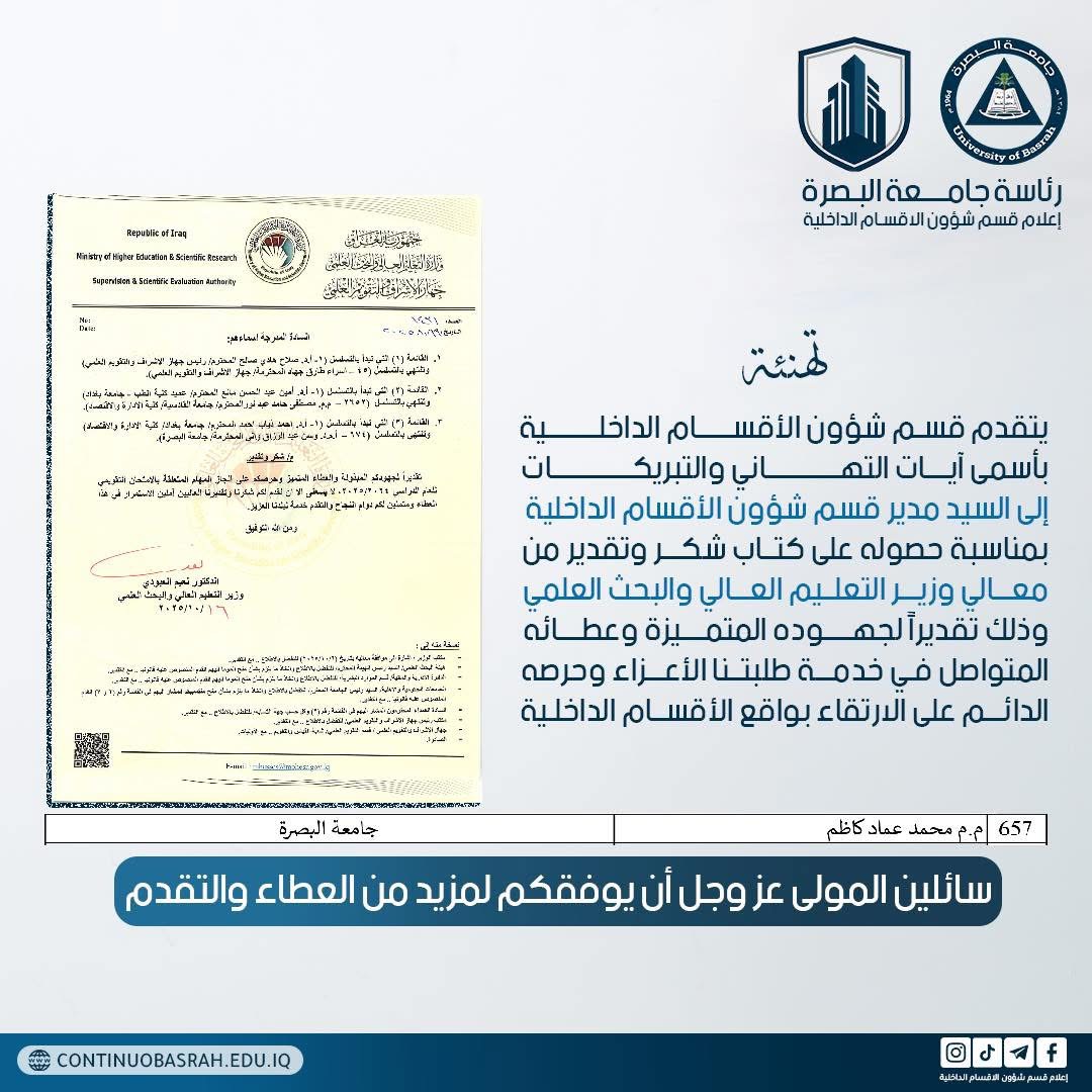جامعة البصرة تطلق فعاليات بطولة الأقسام الداخلية لتعزيز النشاط الرياضي بين الطلبة